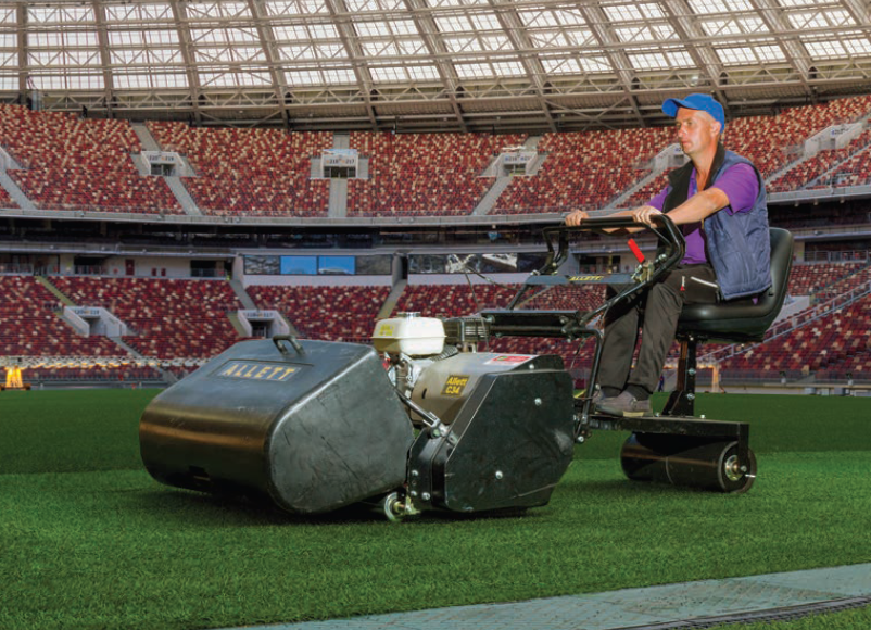 Стадион "Лужники" г. Москва. Барабанная косилка Allett C34 с прижимным роликом для полосной стрижки газона.