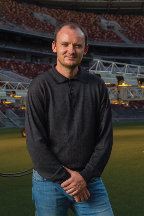 Огромная заслуга в создании превосходного газона в Лужниках принадлежит главному агроному-гринкиперу Максиму Радомскому.