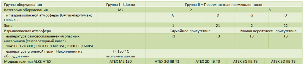 Основываясь на директиве ATEX 2014/34 / EU, доступны следующие решения от Alkè: